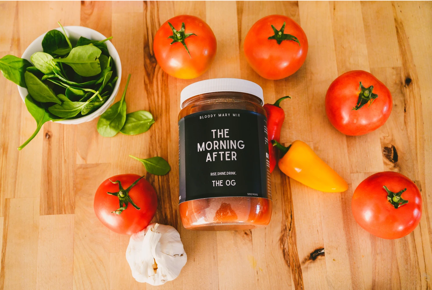 The Morning After Bloody Mary mix stands apart with tomatoes as the #1 ingredient, not water.